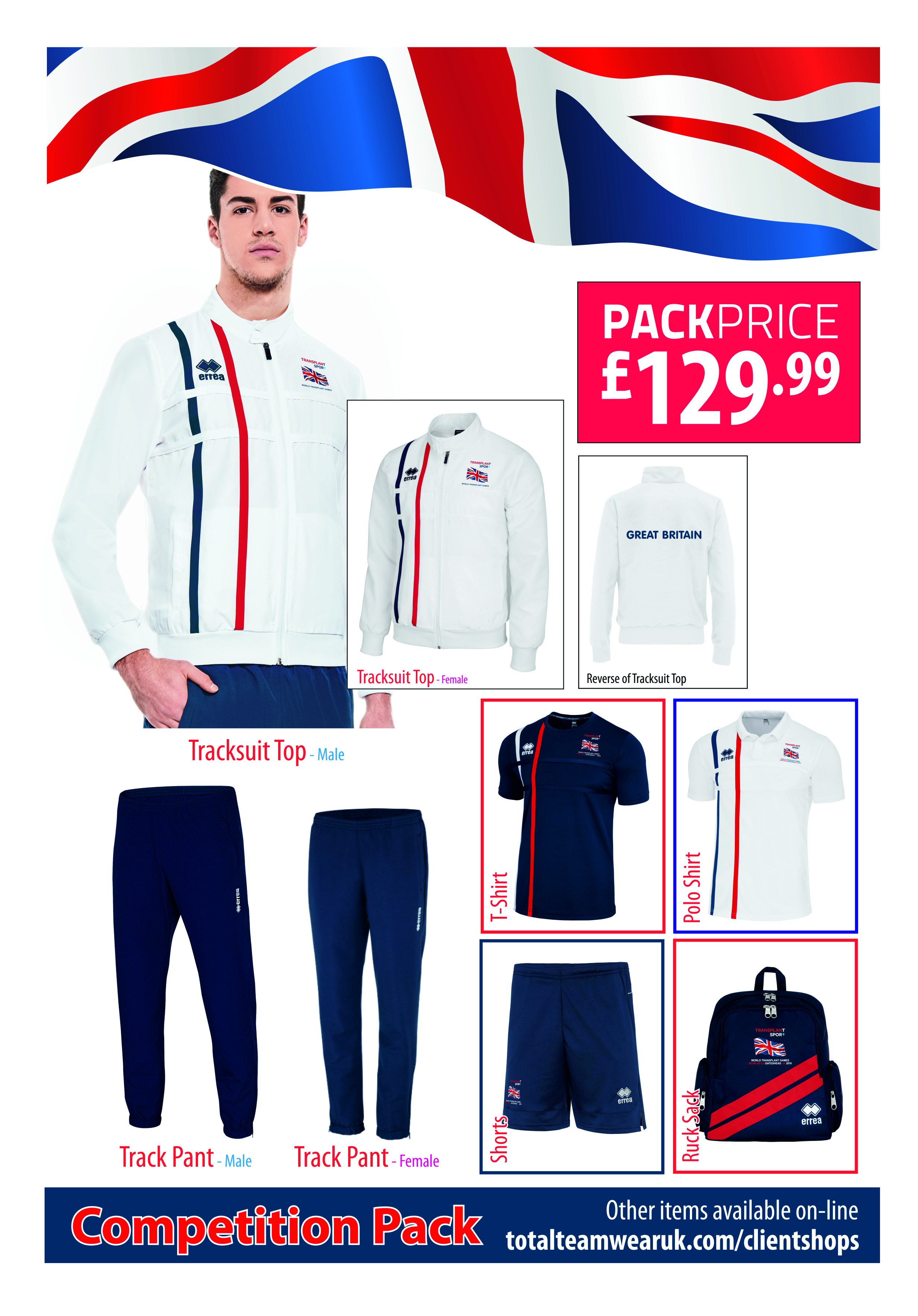 DECORATION ON POLO / T SHIRT / SHORTS / RUCKSACK: WORLD TRANSPLANT GAMES ONLY INCLUDE NEWCASTLE GATESHEAD UK 2019